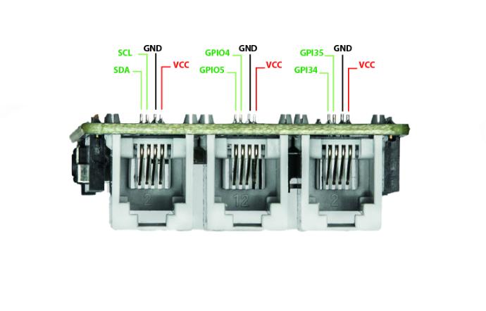 - Puerto 3: Puerto analogico RJ11 pin GPI35/34.
