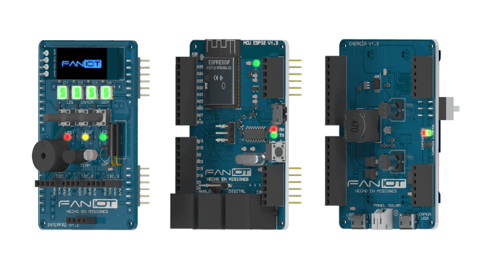 Está basado en el microcontrolador ESP32 de Espressif. Cuenta con conexión WiFi y Bluetooth, 20 entradas/salidas digitales, de las cuales 10 se pueden utilizar como entradas analógicas.