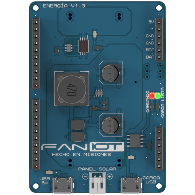 Funciona como batería y se puede utilizar para alimentar los módulos del Kit Maker IOT. Posee conexión para cargarse mediante paneles solares o un cargador USB de 5V.